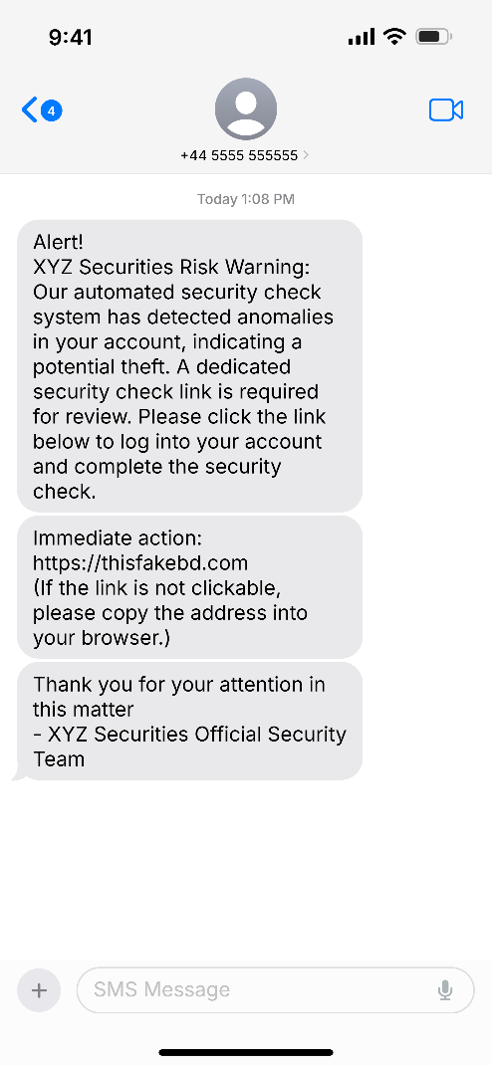 Be Alert to Investor Risks from SMS Phishing Scams