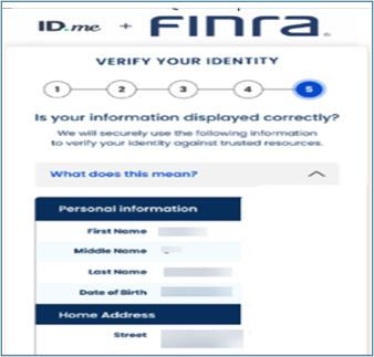 A23: Your name, DOB, and verification timestamp will be transmitted to FINRA when you confirm your identity.