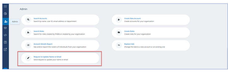 A26: SAAs should use the Update/Replace workflow to update their name and/or email address. This workflow guides the SAA step-by-step through the request process. While most requests will process automatically once approved by an Authorized Signatory, there are circumstances that require a request to route to the FINRA Entitlement Group for review, research, and validation prior to fulfillment. The workflow sends a corresponding email to the Requester and Authorized Signatory once it is completed.