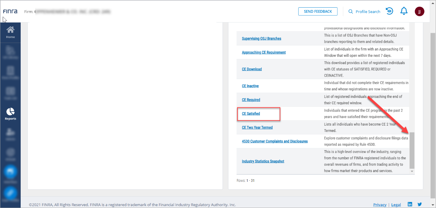 Get information on the CE obligations and statuses within your firm by logging into FINRA Gateway, clicking on the Reports tab, and selecting one of the available CE templates.