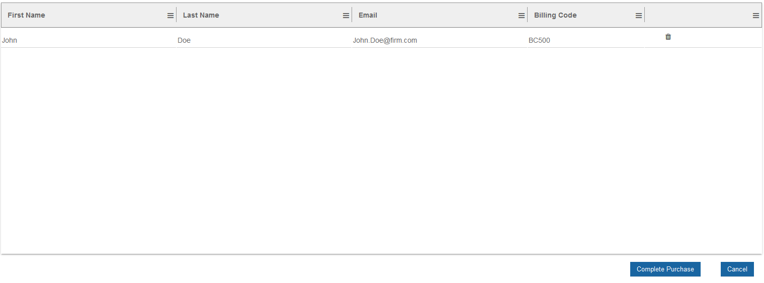 Verify the information presented in Figure 19, and select Complete Purchase to create enrollments for the eligible individuals. If you believe some corrections are required, select Cancel and start the process of manually adding individuals again.